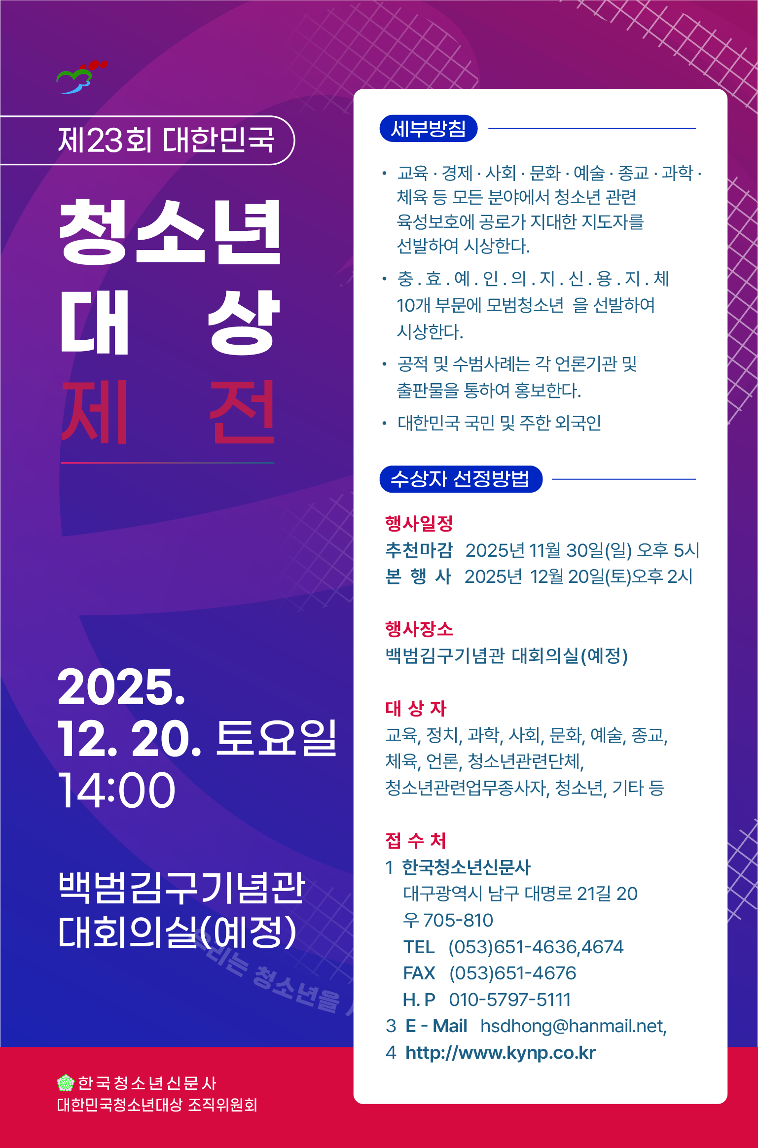 제23회 대한민국청소년대상 수상후보 추천안내